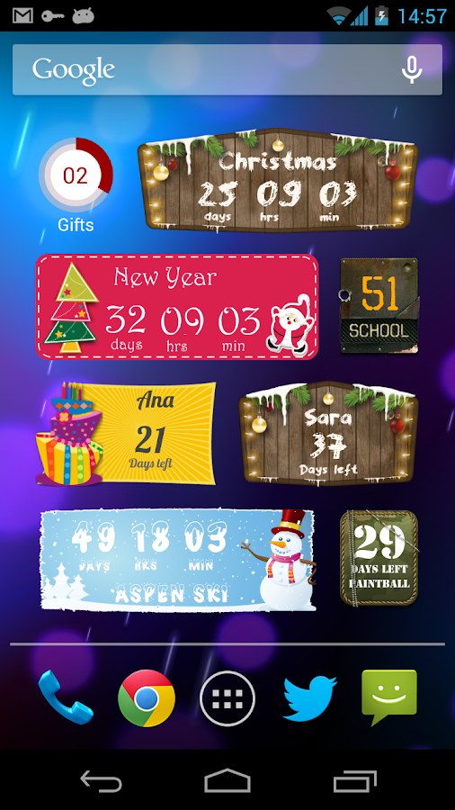 Christmas Countdown Gadget 2023. This enjoyable Christmas countdown app is the perfect way to put you in the holiday spirit. Flexible sizes of timer and button. For more information, see the developer's privacy policy. Christmas Widget Countdown is a free app to give you the number of days before Christmas. Share it with family and friends so everyone gets into the holiday spirit.