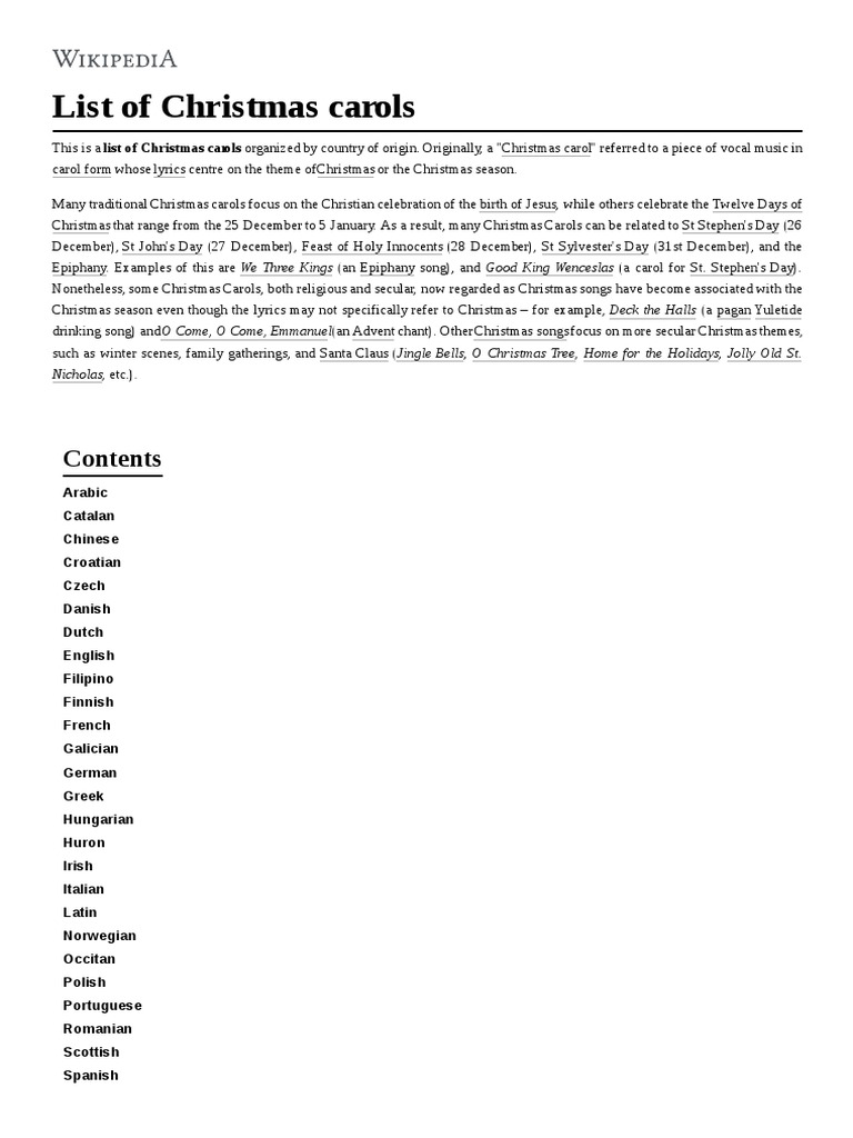 Christmas Carol List Of Songs 2023. Cast (Voices) of Scrooge: A Christmas Carol: Jessie Buckley as Isabel Fezziwig, Olivia Colman as Ghost of Christmas Past, James Cosmo as Mr. A Christmas carol is a carol of songs whose lyrics are on the theme of Christmas, and this list of the best Christmas songs download are traditionally sung on Christmas itself or during the surrounding holiday season. The demarcation of what constitutes a Christmas carol to that of Christmas popular song can often be blurred as they are sung by groups of people going house. It has an infectious melody, with lyrics about rejoicing the birth of Jesus. This list of Christmas carols are great for caroling outdoors or putting together a holiday playlist and includes "Silent Night," "Deck the Halls," "O Christmas Tree" and more.